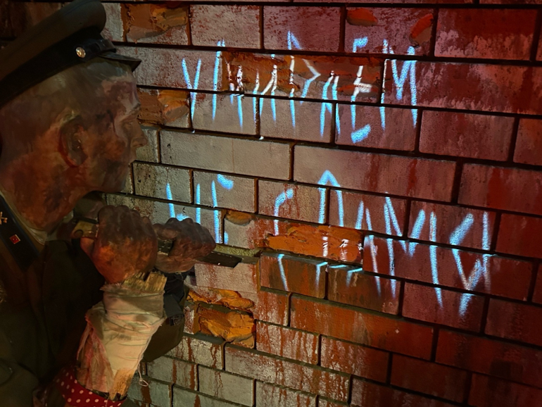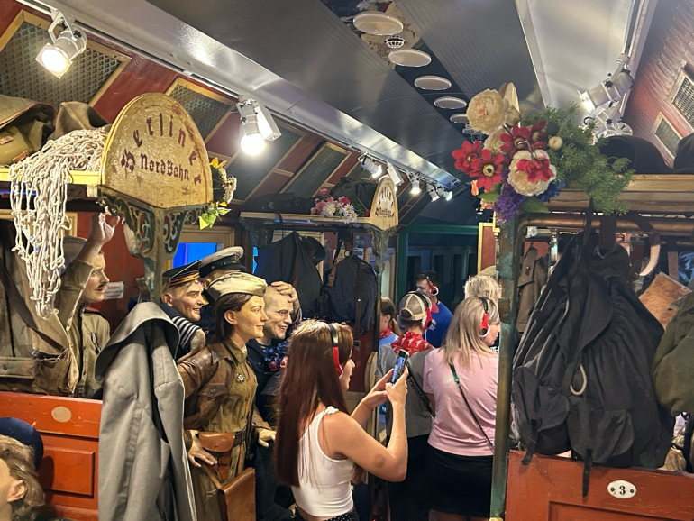 В поезде около четырех тысяч единиц оригинального реквизита, более 150 человеческих фигур, оригинальный свет, театральный звук, вибродинамики.