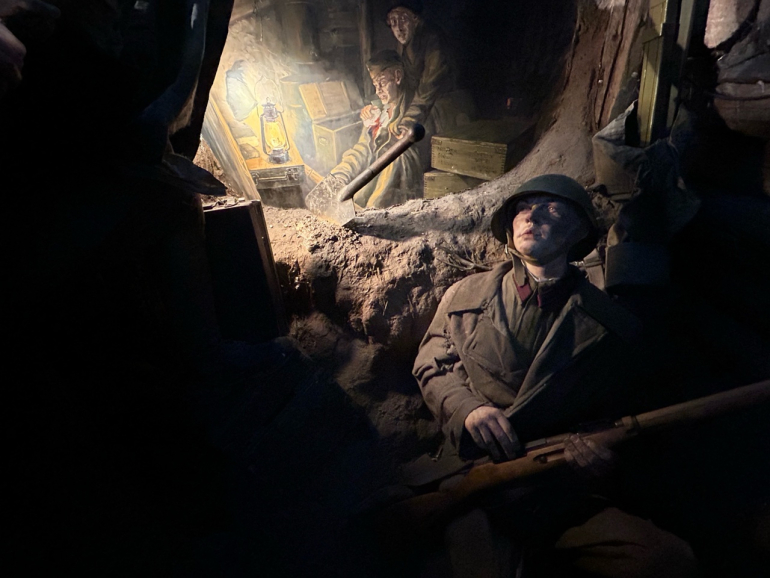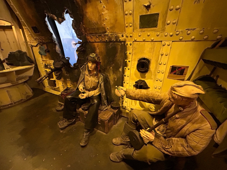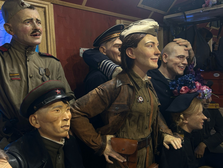 Переходя по составу, люди погружаются в страшную историю Великой Отечественной войны. Один из вагонов называется «Поезд на фронт». Он полон солдат, которые едут защищать Родину.