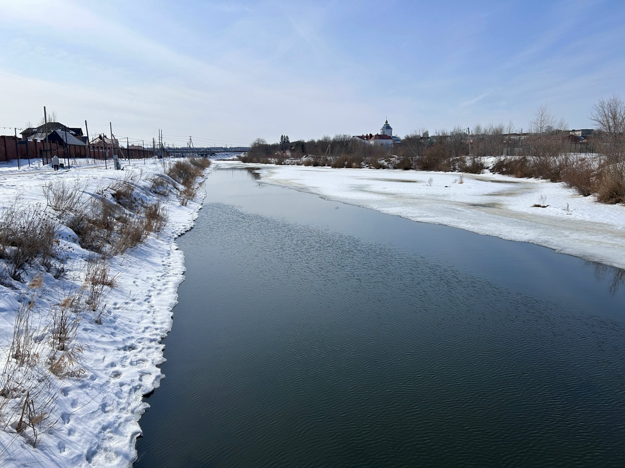 Весна уверенно приходит в Сызрань. Первая река в черте города уже сбросила ледяные оковы. Вода в Крымзе вдоль городской набережной открылась взгляду, хотя до Ильинского моста еще виднеются остатки льда. Скоро придет черед и Сызранки - она станет следующей в череде весеннего половодья.