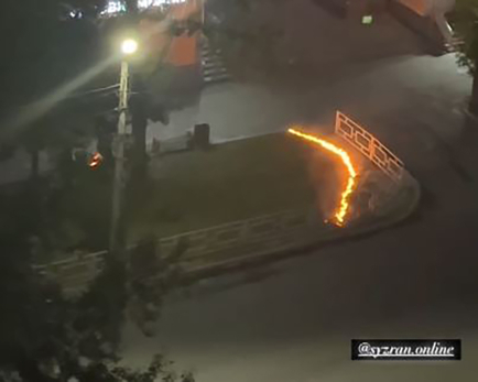 На кадрах засветившегося в телеграмм-канале видеоролика - улица Московская и небольшая стена огня, быстро выжигающая пух от края до края газона. Зрелище не столько интересное, сколько опасное. Да и наказуемое, кстати.
