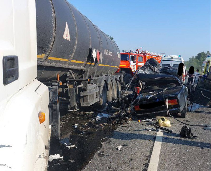 В грузовик с цистерной влетела вазовская легковушка. Судя по видео, опубликованному прокуратурой Самарской области, легковой автомобиль превратился в металлолом.
