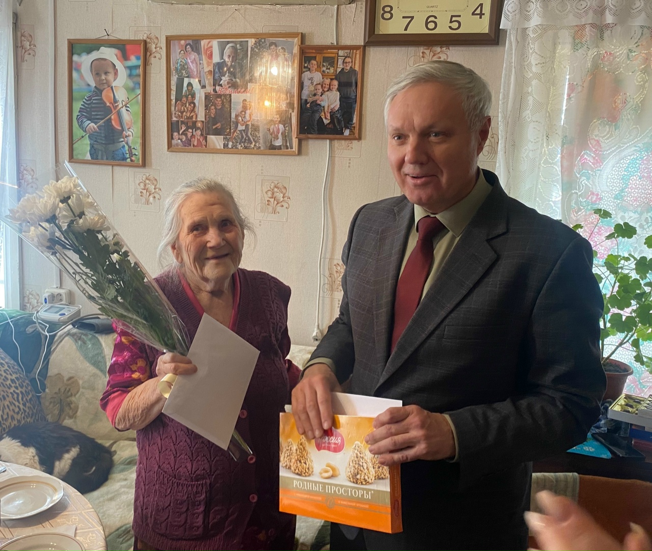 Новый руководитель Октябрьска Владимир Ревин поздравил именинницу с такой значимой датой, вручил поздравительный адрес от президента Российской Федерации Владимира Путина и выразил самые теплые пожелания.