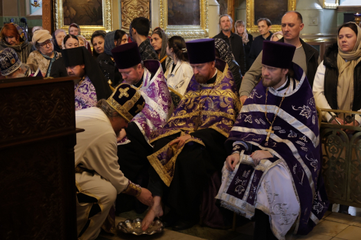 Сызранскому владыке сослужили клирики местной епархии. По окончании Божественной литургии в помещение храма был принесен сосуд с водой. Следуя библейскому канону смирения, по образу Христа, омывшего ноги своим ученикам-апостолам за Тайной Вечерей, епископ Антоний омыл в храме ноги двенадцати сидящим священнослужителям епархии.