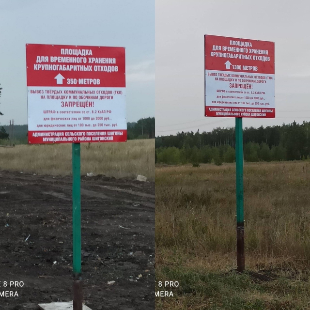 На предупреждающих табличках написано о запрете вывоза твердых коммунальных отходов. На площадку можно вывозить жителям Шигон растительный мусор: ветки, траву, корни деревьев, а также строительный мусор, то есть отходы, которые не вывозит региональный оператор.