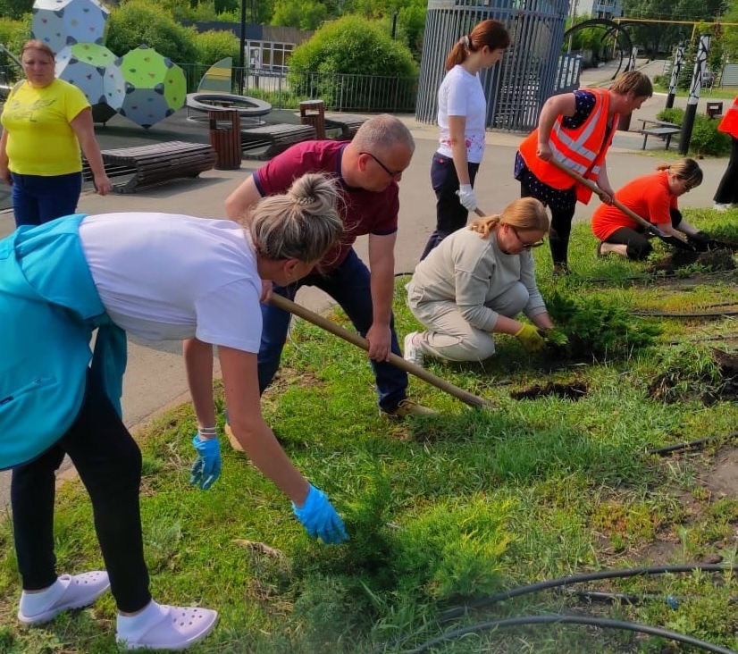 В Октябрьске весело и продуктивно отметили День эколога. Сотрудники местной администрации в честь праздника организовали акцию по благоустройству и озеленению «Парка Поколений».