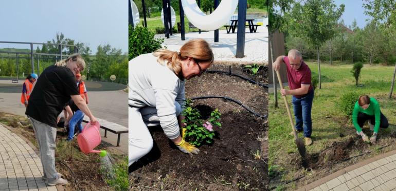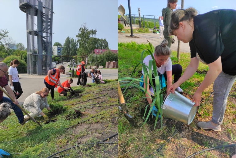 Дружная команда чиновников Октябрьска привела парк в порядок. Участники посадили в клумбы свежие цветы, убрали сорняки, очистили дорожки от мусора.