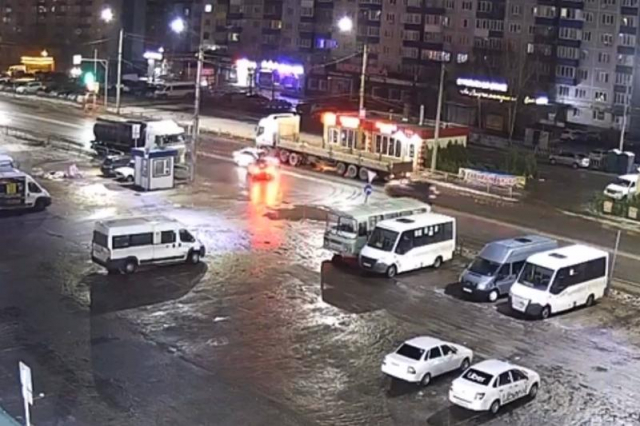 Момент ДТП попал на запись камеры видеонаблюдения и на видео четко видно, как во втором часу ночи мужчина в черно-белой куртке сел в свою Приору на парковке у главного входа в ТЦ и поехал к выезду на проспект 50 лет Октября.