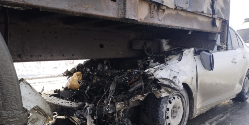 В Самарской области иномарка на скорости залетела под грузовик. Авария произошла в первом часу дня в понедельник, 24 февраля