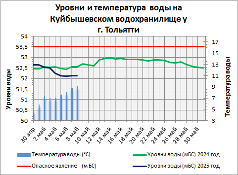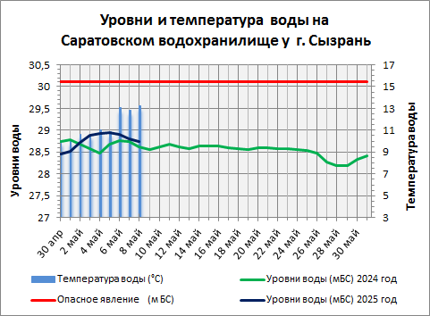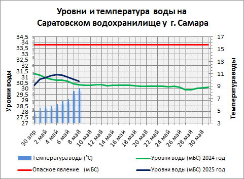 По состоянию на 8 мая вода в Саратовском водохранилище около Сызрани прогрелась до 13 с лишним градусов - за несколько дней температура выросла более чем на два градуса. В Самаре температура воды около 8 градусов. А в Куйбышевском водохранилище в районе Тольятти - чуть более 9 градусов.