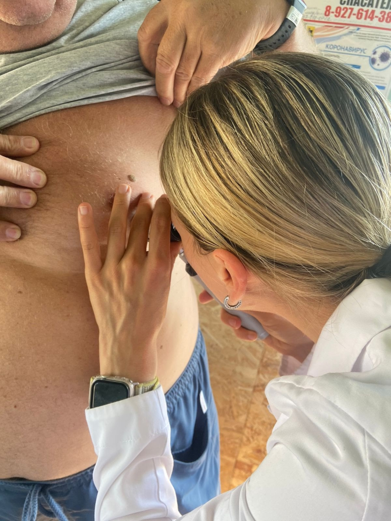 С помощью дерматоскопа, который позволяет увидеть структуру кожи под большим увеличением и повышающего точность диагностики, были осмотрены и женщины, и мужчины. Каждому обратившемуся даны рекомендации по дальнейшему обследованию, лечению и уходу за кожей при длительном нахождении на солнце.