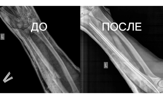 Сложнейшая операция длилась полтора часа. На следующий день ребенку провели металоостеосинтез локтевой кости. В общей сложности подросток провел 10 дней в отделении реанимации и 37 дней в стационаре.