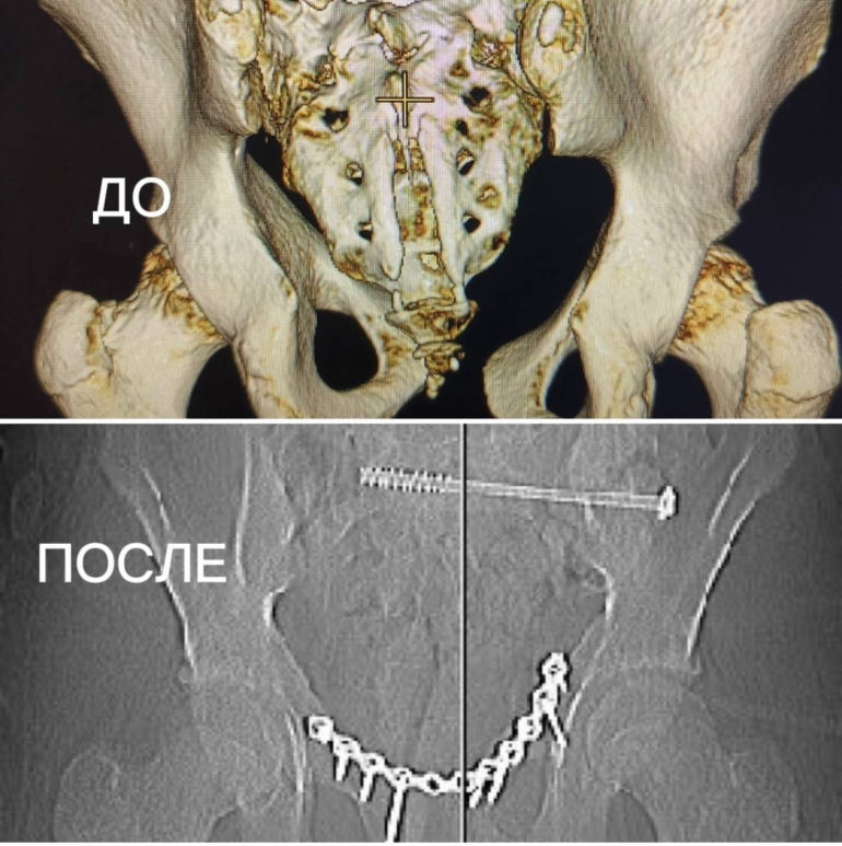 - Перед травматологами стояла крайне трудная задача: по сути «собрать» тазовые кости ребенка. Оперировали ребенка в день поступления. Врачами принято решение провести открытый остеосинтез переломов переднего отдела костей таза пластиной и малоинвазивный металлоостеосинтез перелома заднего отдела таза канюлированым винтом, - пояснили в клинике.