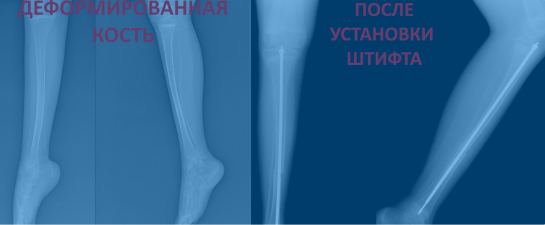 Самый эффективный метод лечения в таких случаях - установка телескопических штифтов. Эта технология используется для укрепления длинных костей, наиболее подверженных переломам. Проведение операции потребовало подготовки - штифт можно установить только в идеально прямую кость, но из-за двух переломов подряд большеберцовая кость ребенка была сильно деформирована. Поэтому предварительно хирурги провели остеотомию - контролируемый перелом для сращения по ровной оси.
