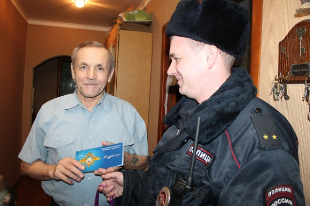 Между тем, юбиляра навестили сотрудники отдельной роты ППСП МУ МВД России «Сызранское». Они вручили ему подарки и пожелали здоровья, долголетия и бодрости духа.
