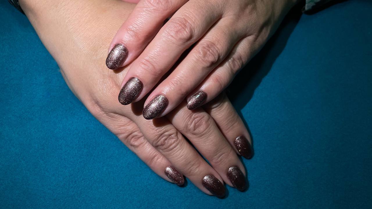 - Эффект «кошачьего глаза» достигается благодаря специальным магнитным лакам с металлическими частицами. Под воздействием магнита эти частицы выстраиваются в красивые линии, создавая глубину и игру света. Первый слой лака наносится как обычный цветной гель. Волшебство начинается со второго слоя: к ногтю подносится небольшой магнит, который заставляет металлические частицы выстраиваться в определенный узор. Можно экспериментировать с направлением движения магнита, создавая линии, зигзаги, волны или концентрические круги. В результате покрытие приобретает уникальный бархатистый блеск и глубину, - рассказала в беседе с КТВ-ЛУЧ нейл-мастер.