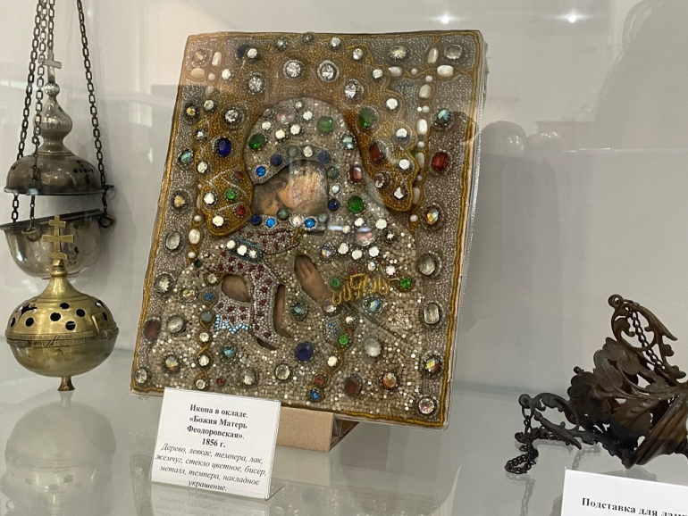 Познакомиться с экспозицией выставки может любой желающий, она будет работать в Краеведческом музее до 24 августа. Организаторы выставки советуют обратить особое внимание на самые ценные экспонаты - «Феодоровскую» икону, которая хранится в фондах музея. Это икона в ризе, украшенная бисером, стразами и жемчугом. Согласно документам, она была передана музею в 1930 г. На оборотной стороне иконы имеется надпись на церковно-славянском языке: «Во благословение Первоначальнице Сызранской Сретенской Женской Общины Рясофорной Монахини Лидии Никитиной, посвящает Сызранского Вознесенского Монастыря Наместник Архимандрит Августин Месяца Июля календарного дня 1856 года». Икона принадлежала настоятельнице женского Сретенского монастыря игуменье Марии. Монастырь был основан в 1856 году. В этот год икона была преподнесена ей в подарок от настоятеля мужского Вознесенского монастыря архимандрита Августина.