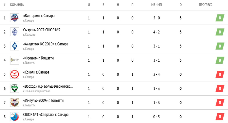 В преддверии 3-го тура «Сызрань-2003» с 3 очками делит 1-4 места в группе «А» с самарскими клубами «Виктория» и «Академия КС-2010», а также тольяттинским «Феонитом».