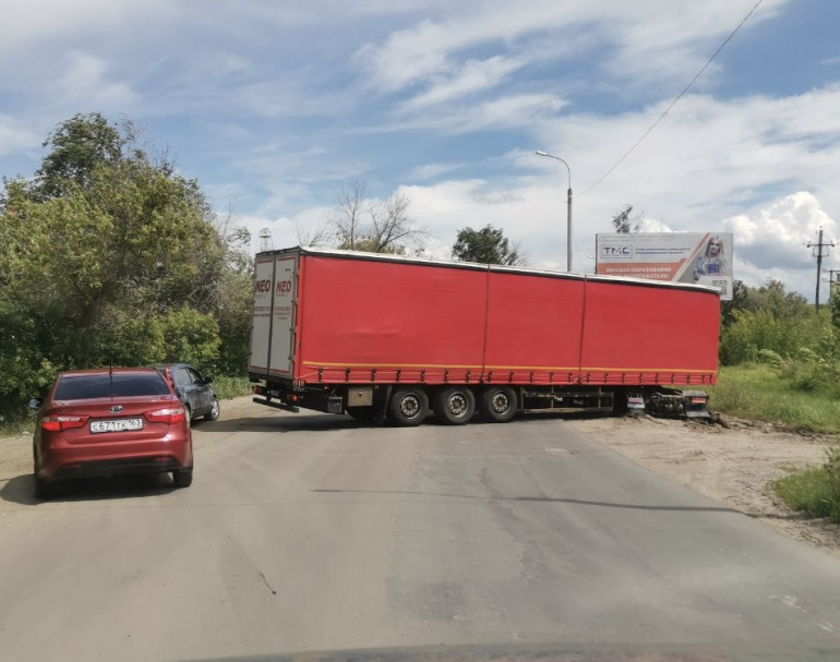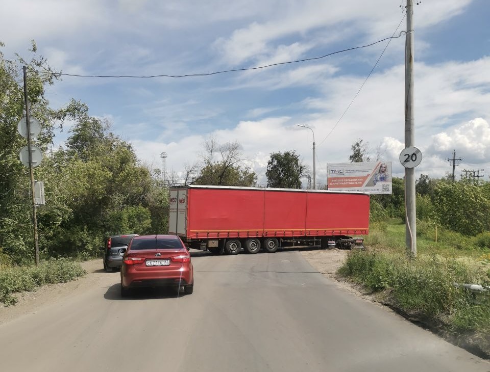 Днем, 1 июля, водитель большегруза с полуприцепом перекрыл половину дороги на выезде из Сызрани. Очевидцы рассказали некоторые подробности.
