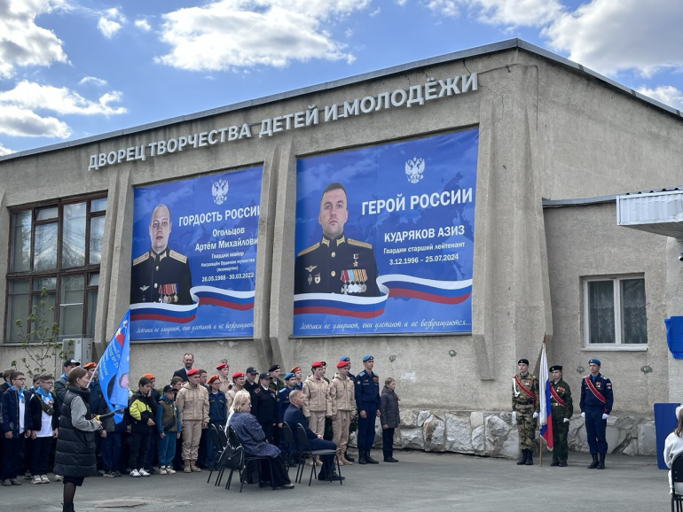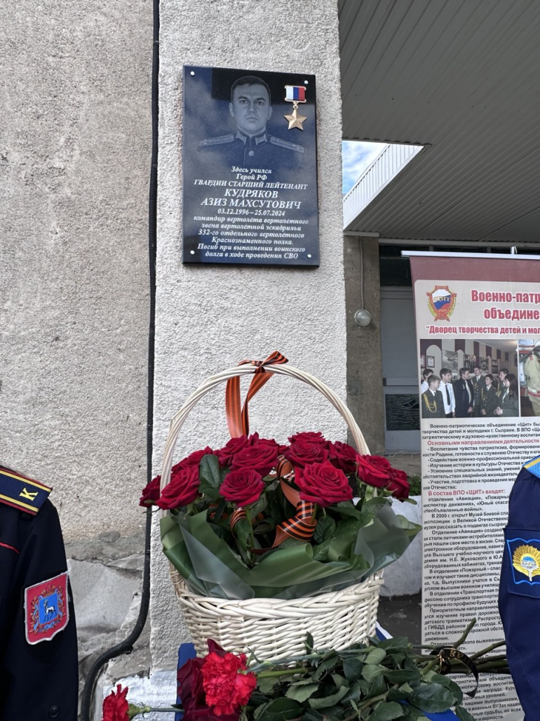 В Сызрани на здании Дворца творчества детей и молодежи открыли памятную доску в честь Героя России Азиза Кудрякова, который ранее там учился.