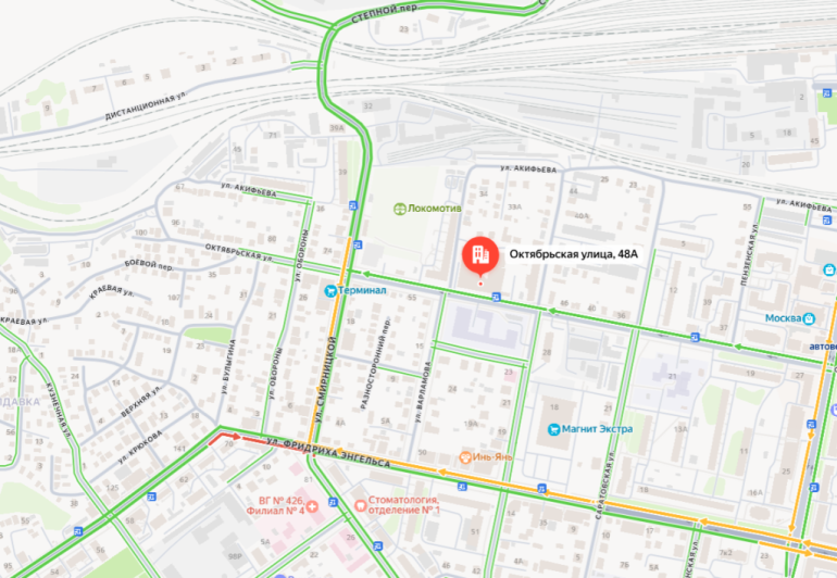 Зато затруднение движения наблюдается в сторону центра от района стадиона «Локомотив».