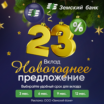В преддверии праздников Земский банк приготовил для своих клиентов уникальный подарок – вклад «Новогоднее предложение» с выгодной ставкой 23% годовых вне зависимости от срока вклада.