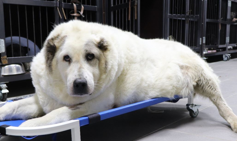 В огромной белой, похожей на медведя собаке, с трудом угадывался Алабай. Пес с трудом передвигался и весил почти сто килограмм. Заботу о собаке взяли на себя волонтеры благотворительного фонда "Сострадание НН".