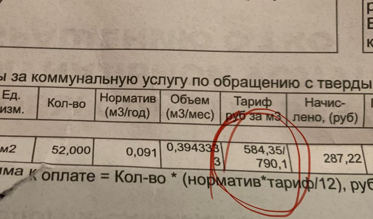 Как передает журналист Виталий Папилкин, после социального резонанса, регоператор не стал сразу применять повышенный тариф. Месяц разбили на две части: 584,35 руб. за квадратный метр с 1 по 9 ноября и 790,1 руб. за кубометр с 10 ноября.