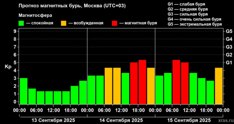 Там уточняют, что бурь выше уровня G2 (средняя буря) пока не ожидается. Однако, прогноз пока предварительный, так как основные параметры солнечного ветра удастся измерить, только когда Земля непосредственно окажется в возмущённой области межпланетного пространства.