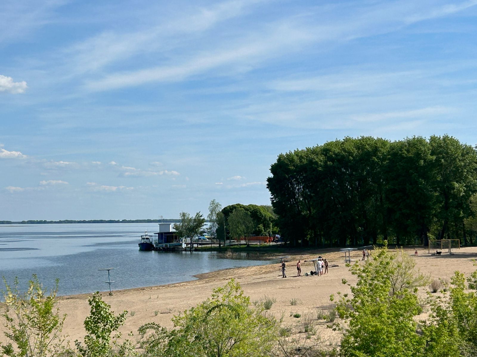 Жители Сызрани раньше времени открыли купальный сезон. На пляже у спасательной станции замечены с десяток отдыхающих, решивших провести солнечный день у воды. Нашлись и желающие и зайти в воду, но только по колено - температура в Волге едва достигла 15-градусной отметки.