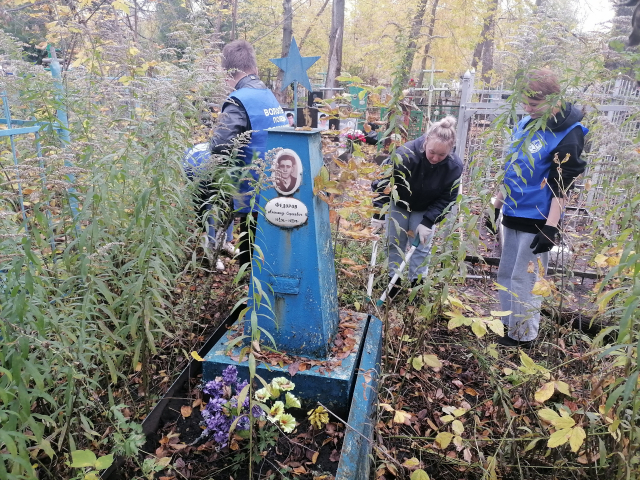 Ребята благоустроили захоронения фронтовиков на территории кладбища «Фомкин сад». За несколько часов молодые люди сделали большую работу: убрали разросшуюся поросль, собрали и вынесли мусор.